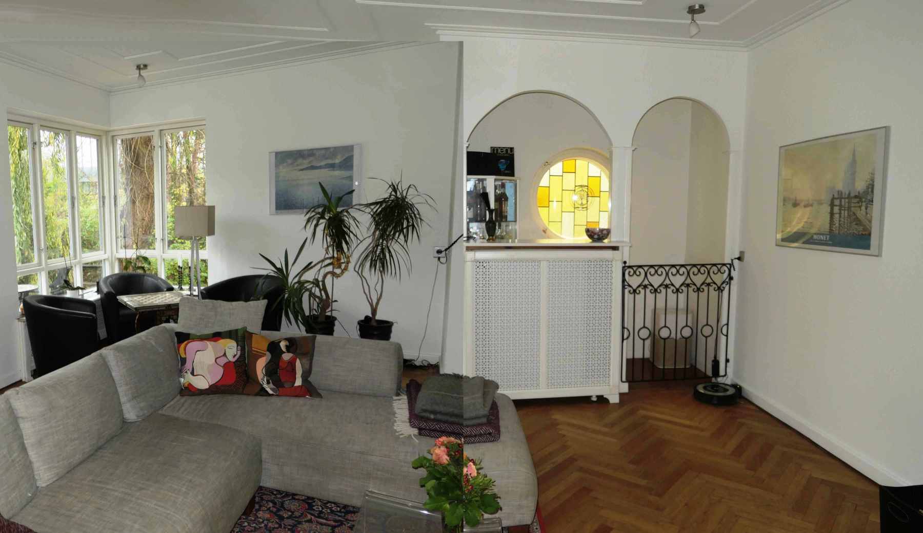 Ægteparret boede under illegalt navn på 1.sal mod syd ud mod haven. Fotos: 1946, 1957 og 2018.